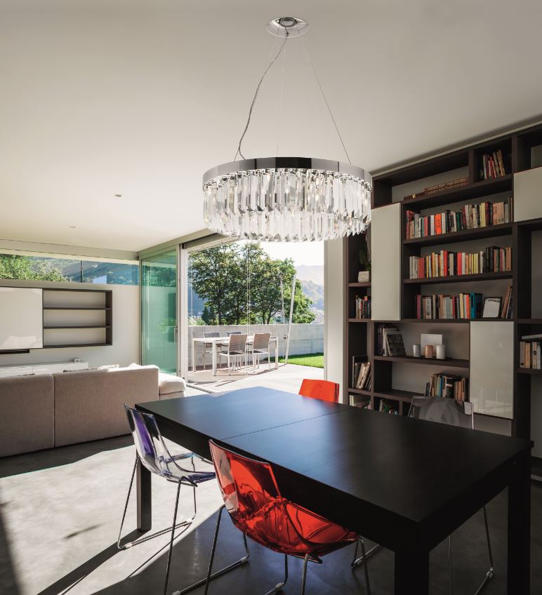 #1 Per un salotto bisogna considerare i punti focali della stanza, per cui un lampadario sospeso sarà perfetto per illuminare l’area dei divani, o eventualmente quella del tavolo da pranzo, con uno stile più classico. Se invece si è alla ricerca di un’opzione meno tradizionale e di impatto, posizionare un elemento illuminante a parete in punti strategici come accanto a una libreria o sopra un caminetto creerà sicuramente un effetto di eleganza e ricercatezza.